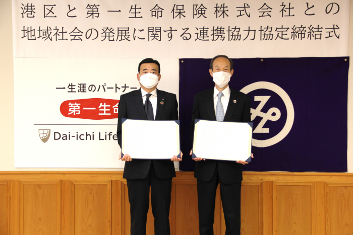 港区と第一生命保険株式会社は、同社による地域活動への参画のほか、区内の保険契約者・関係者に対し、区の新型コロナウイルス感染症対策の周知に連携して取り組むなど、良好な関係を構築してきました。