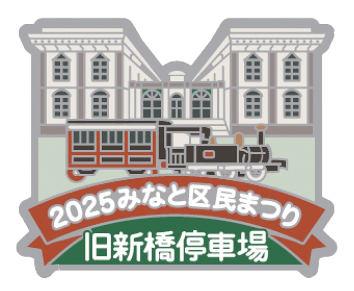 「旧新橋停車場」をモチーフとした記念バッジ(500円)を販売します。「東京タワー・メインデッキ招待券1枚(先着2,000枚)」やまつり当日に実施する「子ども縁日参加券1枚」が付いてくる他、区内のおでかけスポットの割引等の購入特典もあります。