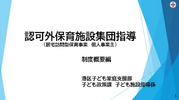 居宅訪問型保育事業(個人事業主)集団指導 制度概要編