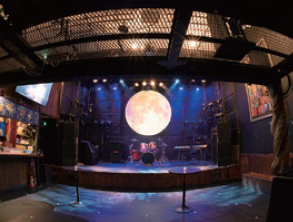「月見ル」という名前のとおりステージには大きな満月。吹き抜け構造で開放感のある空間は地下であることを忘れてしまうほど