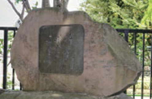 正門を入ってすぐのところに俳人・中村草田男の有名な句『降る雪や明治は遠くになりにけり』の石碑があります。青南小学校に約1年在籍していた草田男にちなんで、毎年「草田男展」が開催されます。全校児童が俳句を作り、優秀作には「草田男賞」が贈られます