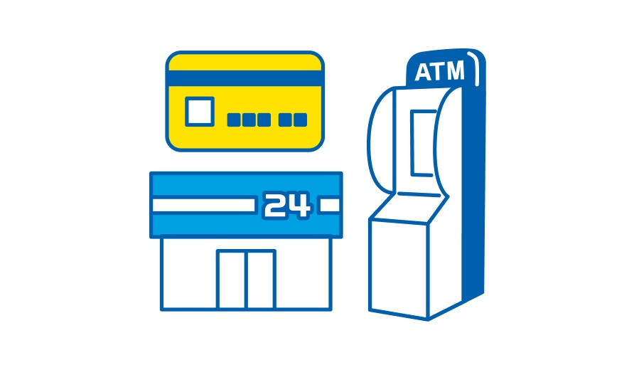 - コンビニエンスストアのレジ(現金でチャージ)