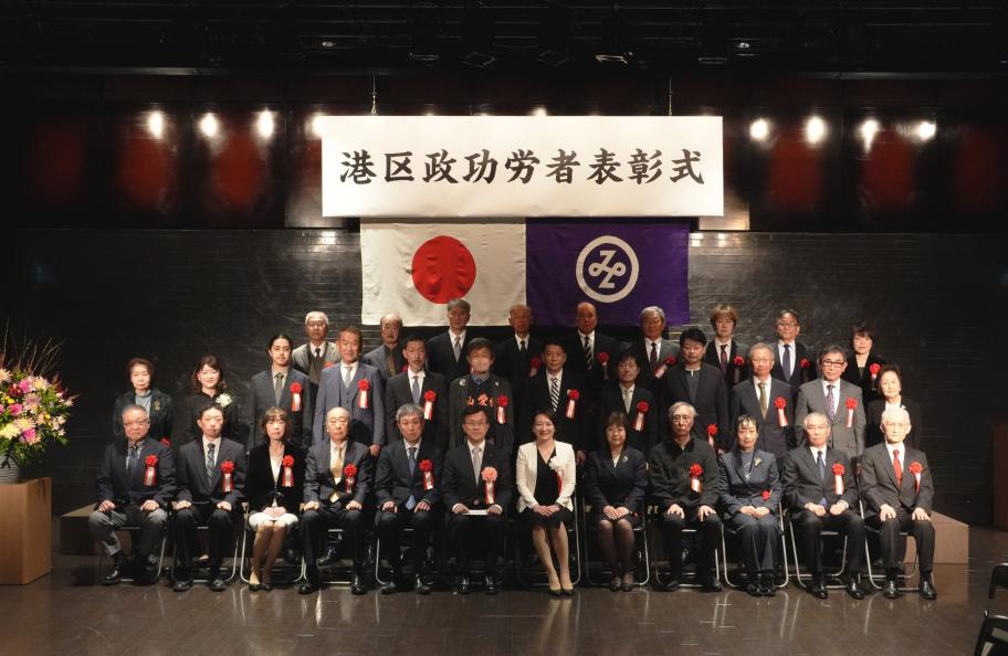 区は、毎年、港区が誕生した3月に、長年にわたり、区民福祉と文化の向上に、特に献身的な活動を続けてこられた方々のご功績を称え、区政功労者として表彰しております。