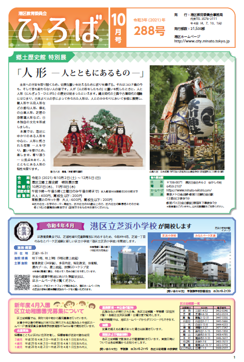 郷土歴史館 特別展「人形ー人とともにあるものー」/令和4年4月 港区立芝浜小学校が開校します/新年度4月入園 区立幼稚園園児募集について