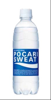 ポカリスエットという名前は、明るくさわやかで躍動感を感じさせる“音”をイメージした「ポカリ」という言葉と“汗”という意味を持つ英単語の「スエット(sweat)」から付きました。ロゴはシンプルで、青い背景に白くカーブしたラインと文字で構成されています。青色は海、白色は波をイメージし、ラインは、水分の回復状況を真水とポカリスエットで比較したグラフを元に作られました。これに「IONSUPPLYDRINK」と書き添えることで、水分補給に優れている飲み物というメッセージを込めているそうです。