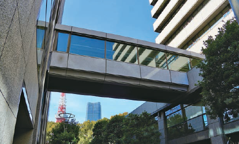 昭和59(1984)年、港区に入庁し、港区特別施設建設本部建設課に勤務し、庁舎と議場の設計にも関わりました。庁舎と議場を連絡する上空通路は担当者と何度も協議を重ねて、必要性を認めてもらい、やっとの思いで実現することができました。